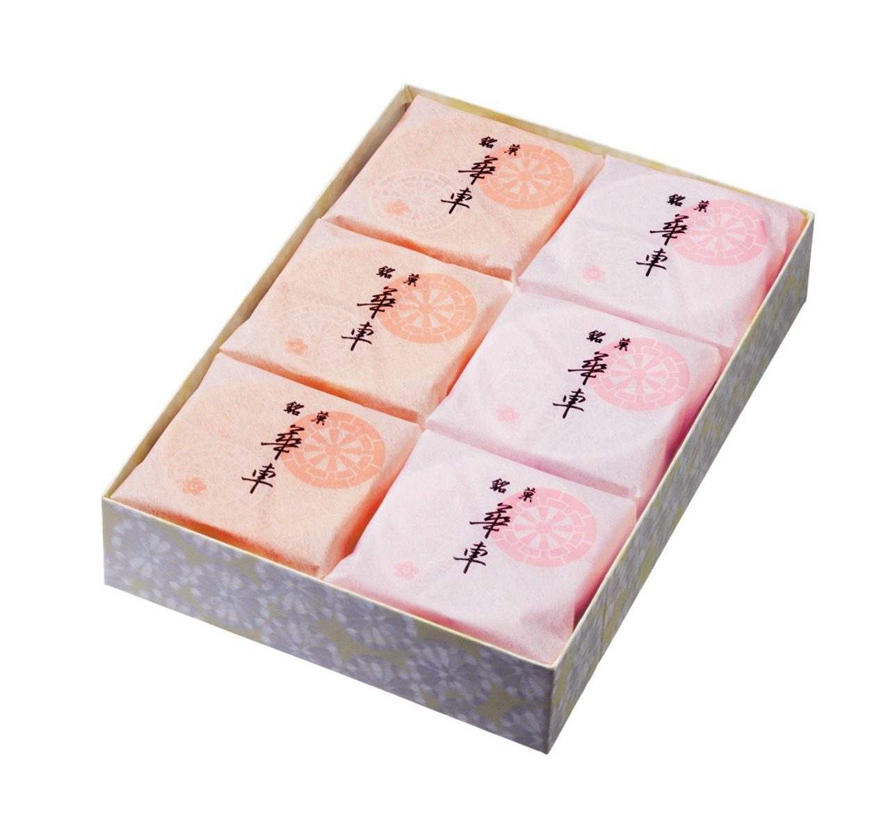 五十鈴銘菓「華車」は御所車を形取った3色の餡を楽しめるやや大きめの最中。(大納言・柚子・栗の餡)餡の甘さを控える事で、素材が生き、風味豊かです。
