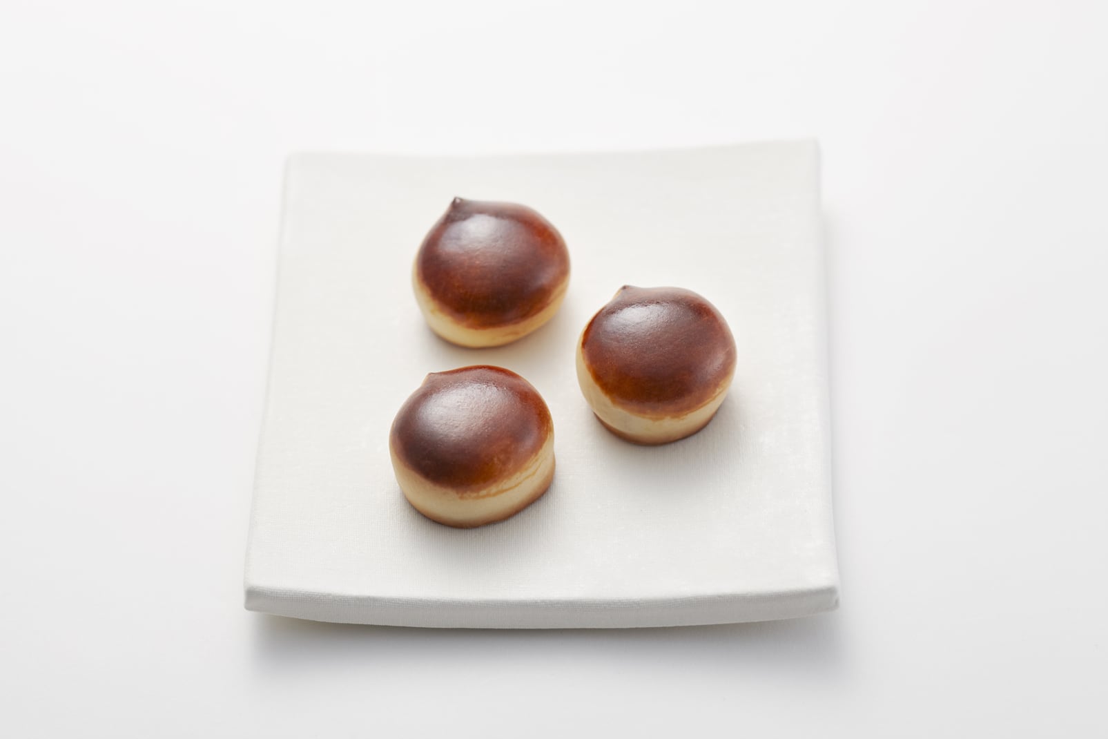 栗の形をした小さいかわいいお饅頭。細かく刻んだ栗と白餡をしっとりとした生地で包んだ焼き菓子です。